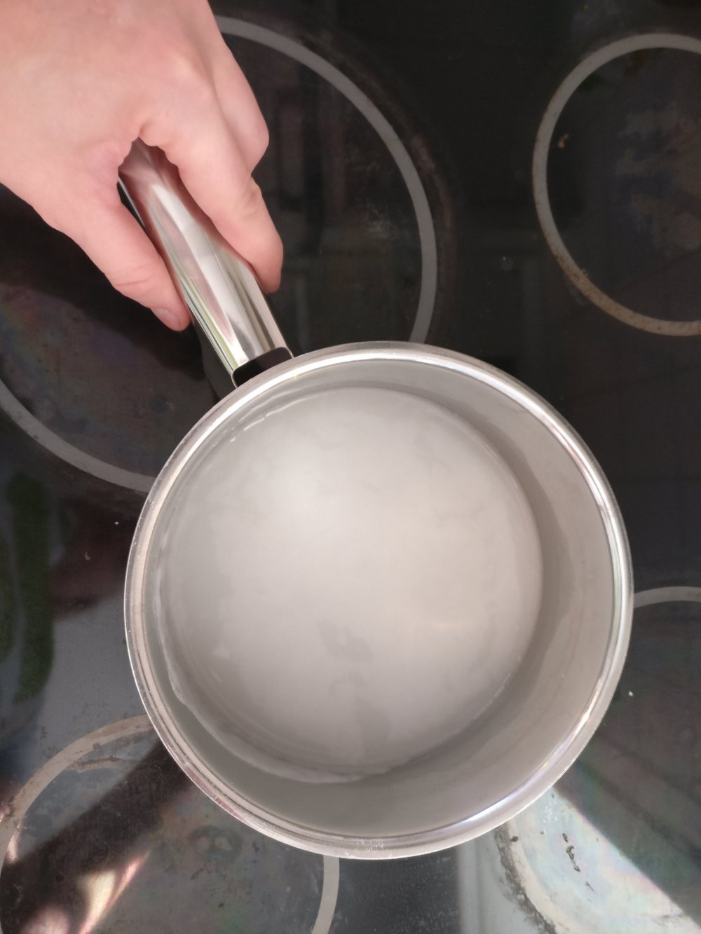 2. Kaalin itkiessä valmista puuro. Mittaa vesi ja makea riisijauho kattilaan ja vatkaa lankavispilällä sileäksi. Kuumenna keskilämmöllä koko ajan sekoittaen, kunnes kiehahtaa ja paksunee, n.10min. Lisää lopuksi sokeri, sekoita, anna kiehahtaa ja nosta jäähtymään.