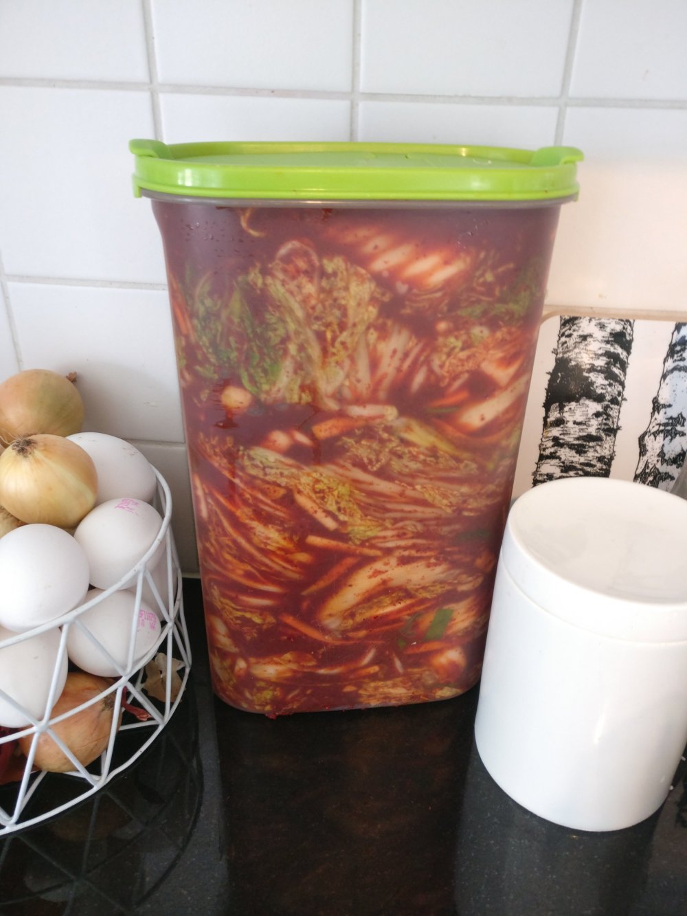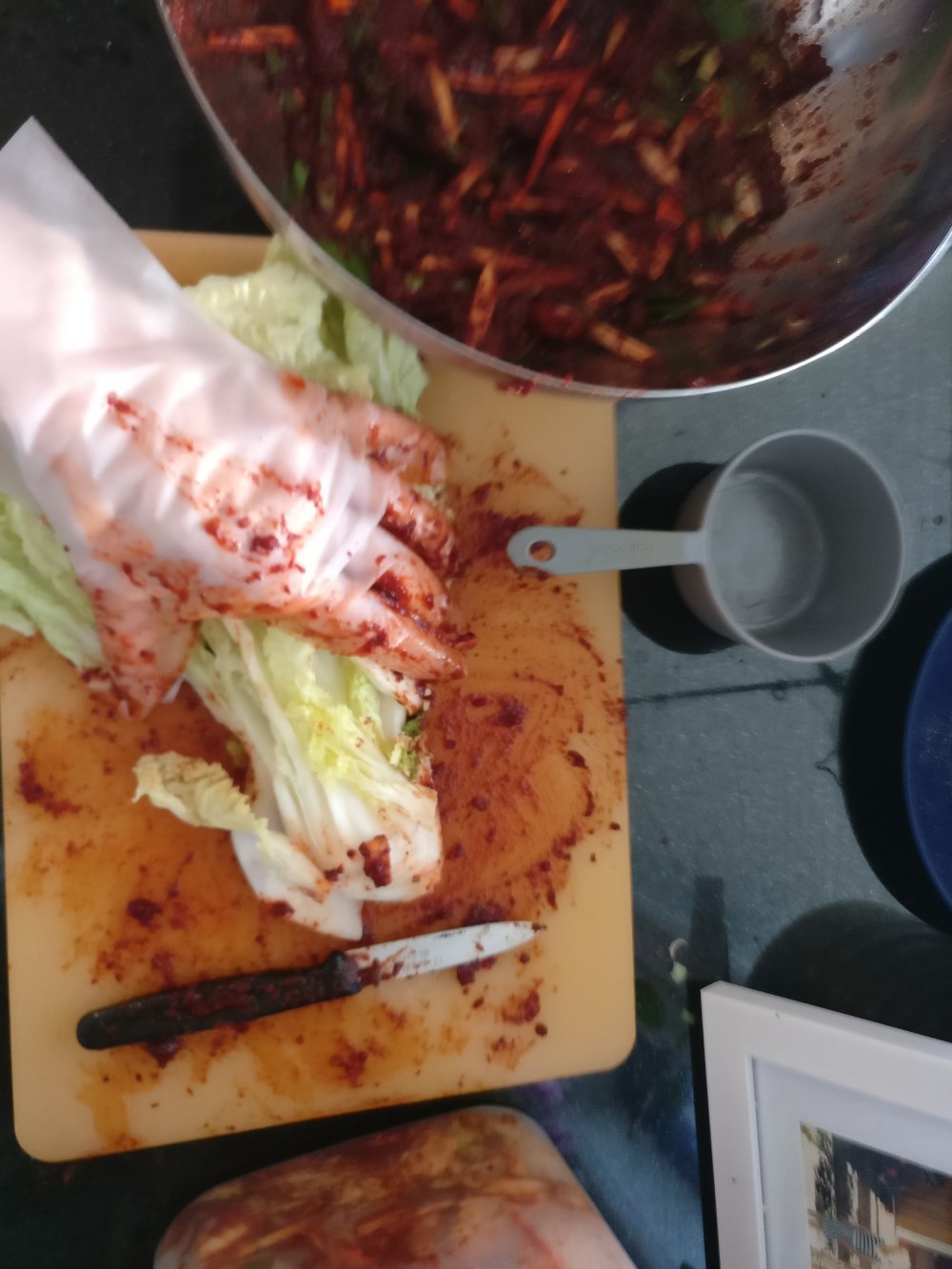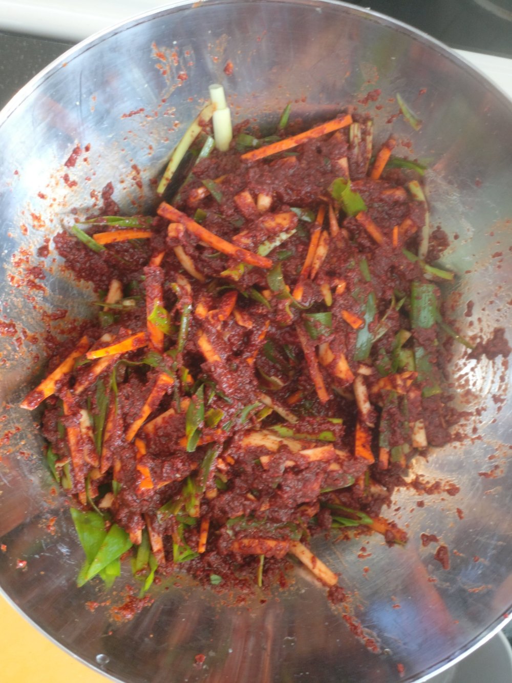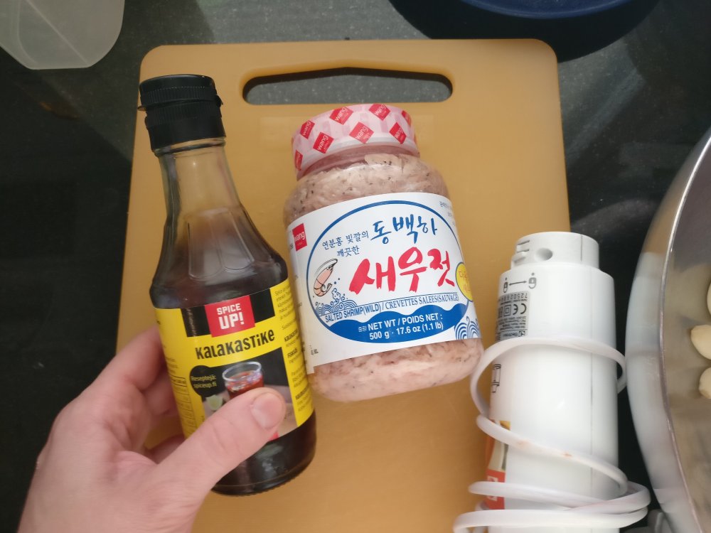 Olen tehnyt kimchiä kotona vuodesta 2004 tai 2005, kerran pari vuodessa. Se on isotöinen ja epäonnistui aluksi lähes joka kerta. Sitten löysin Maangchi-nimisen naisen pitämän blogin. Kannattaa käydä kurkkimassa, hänen resepteillään olen onnistunut aina, vaikka olenkin joutunut korvaamaan joitain tuotteita toisilla. Kala-ja äyriäisallergikon muuten kannattaa välttää kimchiä, valmistusaineisiin kuuluu mm. suolatut katkaravut ja kalakastike. Voit myös tarkistaa alkuperäisestä reseptistä, millä olen mitäkin korvannut.