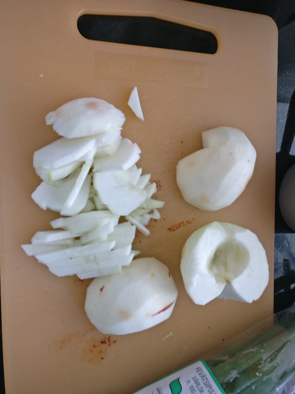 4-5 dl kotimaista omenaa pestynä, kuorittuna ja tikuiksi leikattuna (eli 3-4 isoa)/EDIT 23.4.20 200g valkoretikkaa