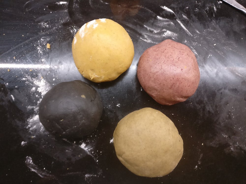 4. Itse päädyin värjäämään taikinan neljäksi eri väriksi.