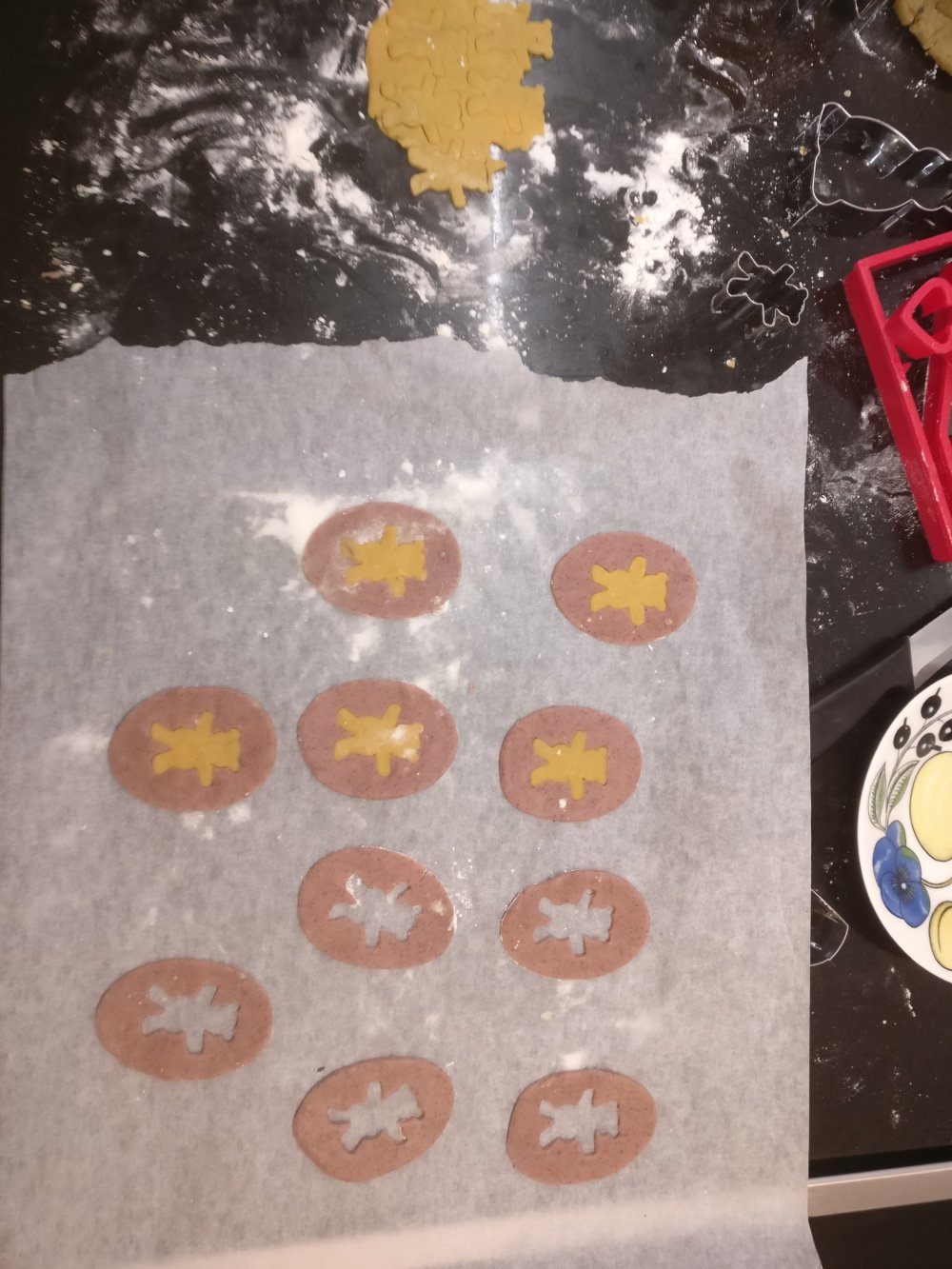 5. Tee pipareita. Paista +200C n. 5min jos teet yhtä ohuista kuin minä, jos tykkäät paksummista pipareista, pidennä paistoaikaa ja paista koepipari.
