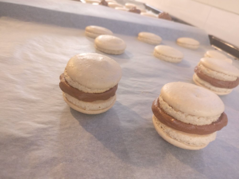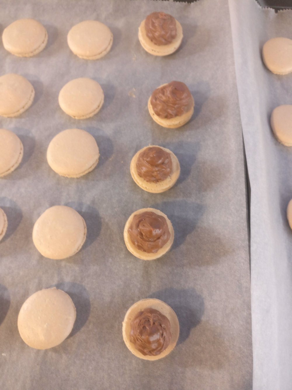 4. Pursota 8:lle macaronille toista täytettä ja 8: lle macaronille toista täytettä. Nosta kansi päälle.