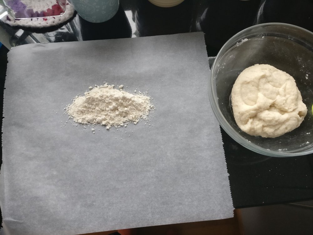 Tämä resepti syntyi monen yrityksen kautta perheelle, jossa ainoat kaikille sopivat jauhot ovat manteli, tapioka ja peruna. Perheen äiti toivoi erityisesti lehtitaikinareseptiä, johon ensin vastasin, ettei se taida onnistua. Ajatus jäi kuitenkin muhimaan takaraivoon ja siitä se sitten lähti.