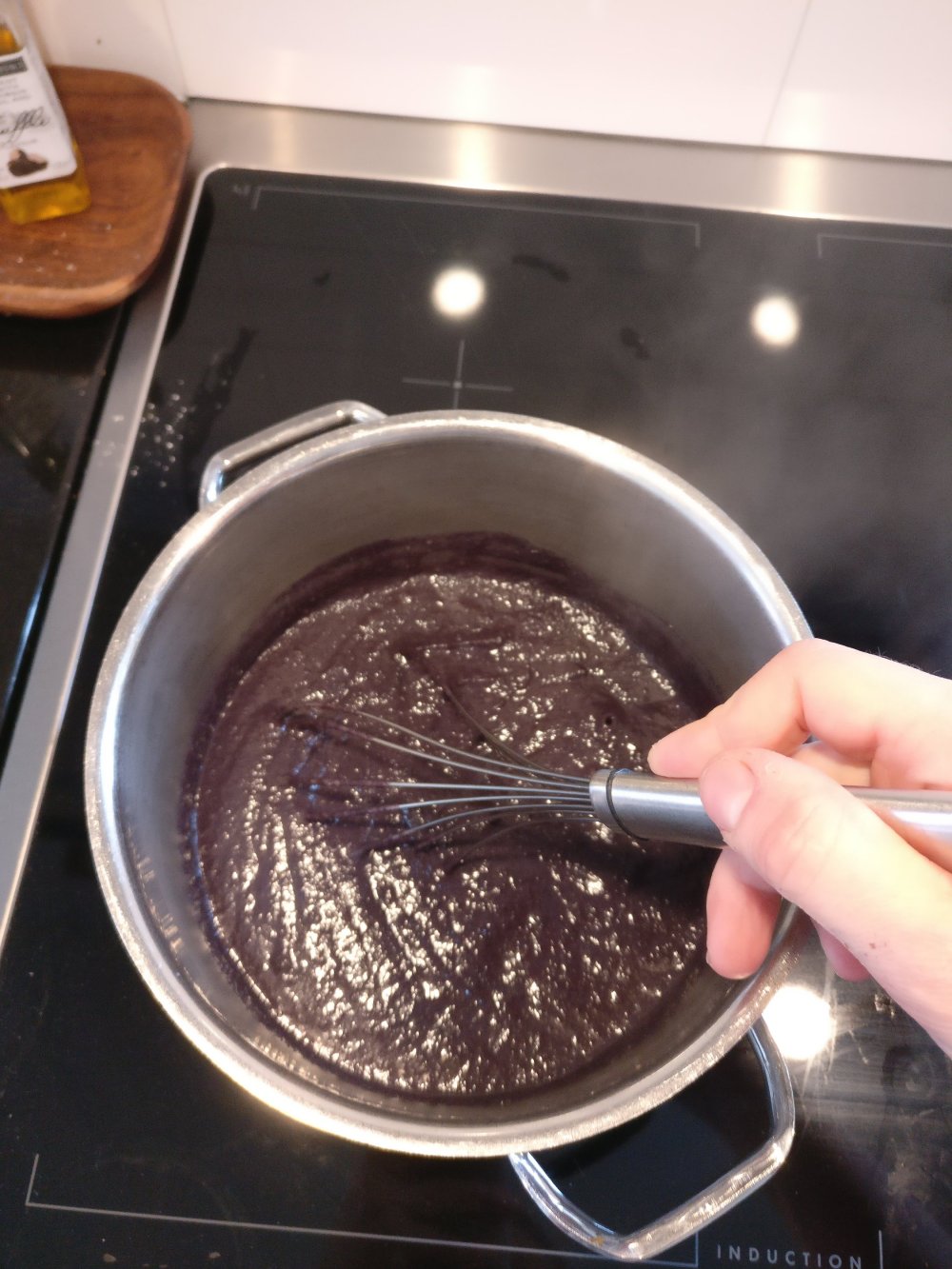2. Lisää kaikki muu, paitsi 1dl olutta ja 1dl vettä. Aja soseeksi. Siirrä kattilaan ja keitä koko ajan sekoittaen 30min.