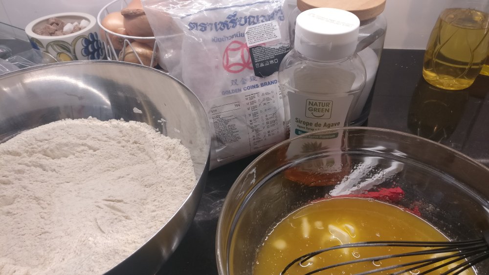 2. Mittaa jauhoseoksen ainekset kulhoon, käytä vaakaa jauhojen kanssa, mausteet voi mitata lusikalla.