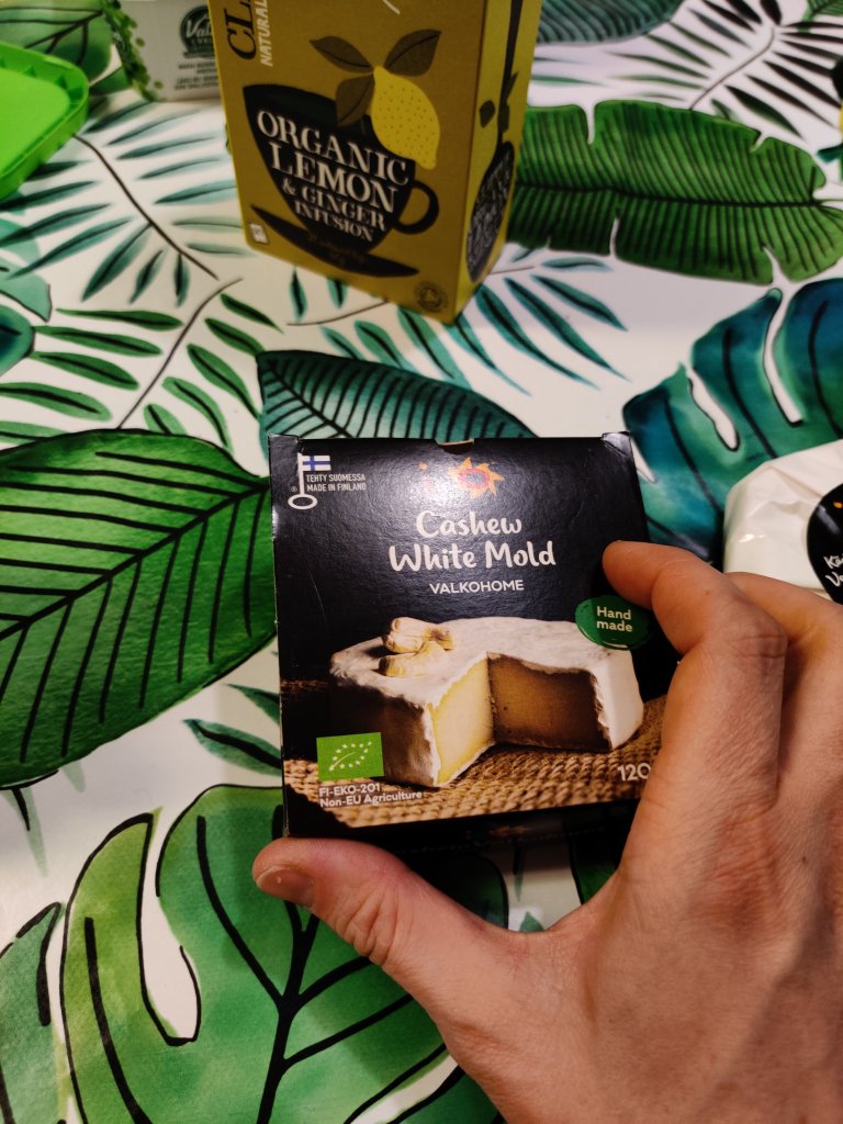 Sain ensimmäisen kerran kymmeneen vuoteen jonkun muun valmistamaa valkohomejuustoa! Ihana yllätys, kun avasin lapsuudenkodissa pitkän junamatkan jälkeen jääkaapin ja äiti oli löytänyt paikallisesta Prismasta Ilon cashewbriejuustoa minulle!
