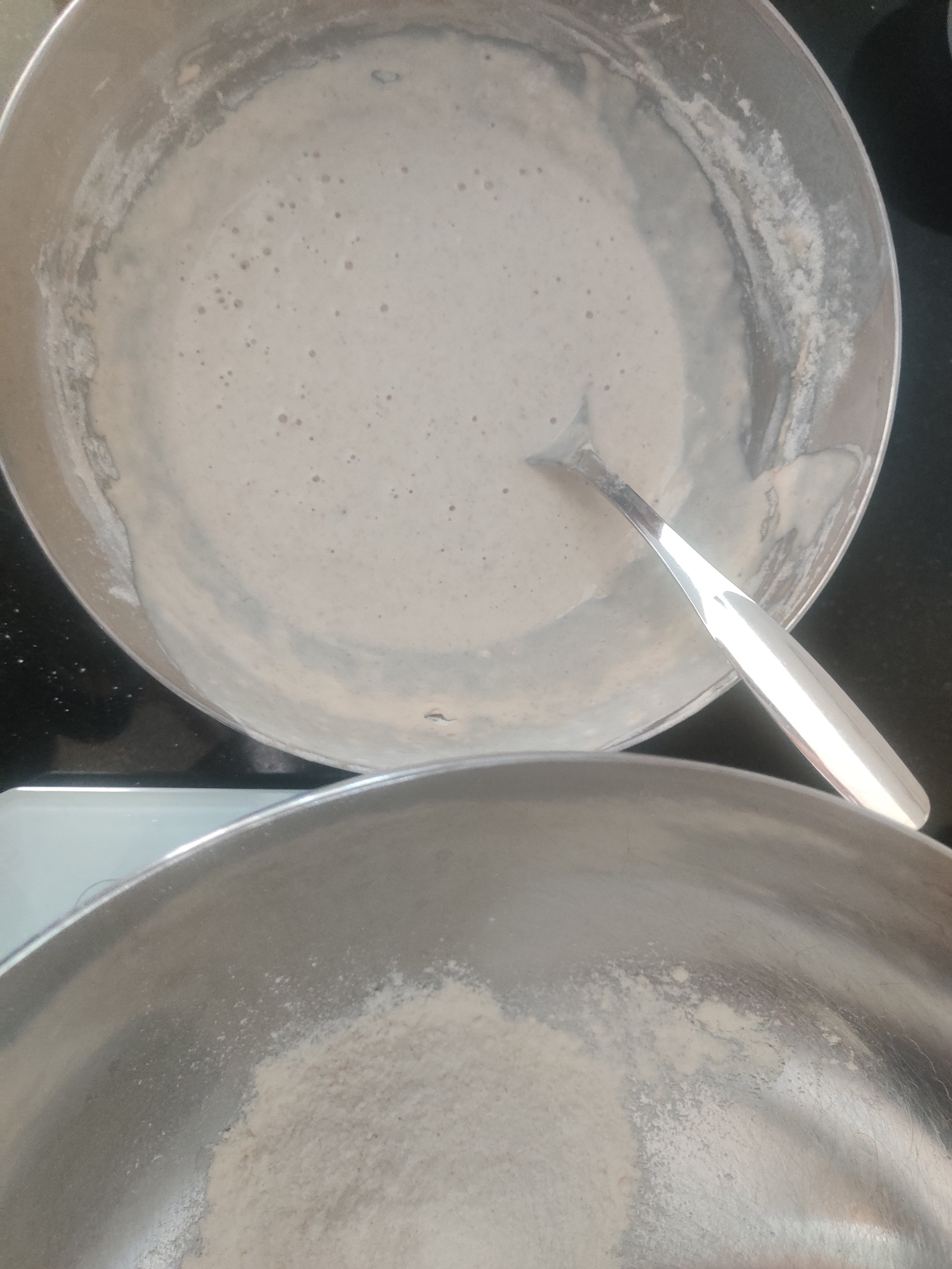 1. Sekoita vesi ja jauhot puhtaassa kuivilla ja peitä kulho lautasella tai muulla ei-ilmatiiviillä kannella. Seoksen koostumus muistuttaa löysää puuroa.